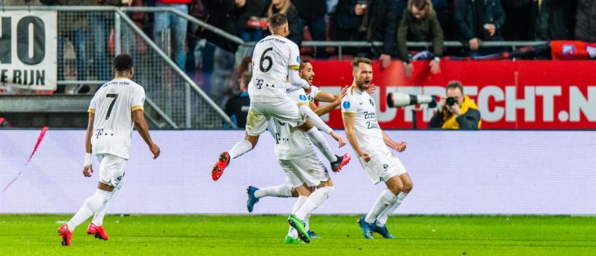 Sander van de Streek viert de 1-0 tegen Ajax in de halve finale van vorig seizoen