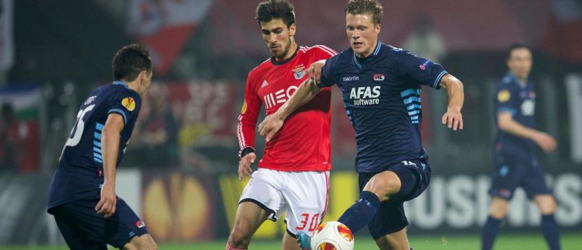 Nadat Slovan Liberec en het Russische Anzhi in de knock-out fase werden uitgeschakeld wachtte in de kwartfinales de eerste loodzware opdracht voor de ploeg waarbij de Ameikaanse Aron Jóhannsson vooral voor de doelpunten zorgde. In eigen huis deden de Alkmaarders zeker niet onder voor het grote Benfica. Toch kwam de ploeg van onder andere Nemanja Gudelj en Steven Berghuis niet tot scoren. De Portugesen wonnen met 1-0. Tijdens de uitwedstrijd bleek Benfica opnieuw een maatje te groot. In het Estadio Da Luz ging AZ met 2-0 onderuit.