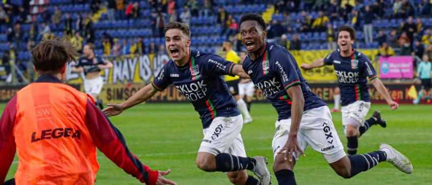 NAC Breda is er niet in geslaagd te promoveren naar de Eredivisie. De ploeg van Maurice Steijn kwam in de finale van de play-offs tekort tegen NEC. Een late goal van Jonathan Okita bracht de Nijmegenaren terug naar het hoogste niveau. Bekijk de hoogtepunten van het spannende duel.