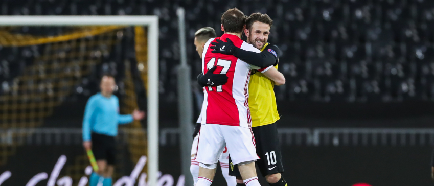 Onderonsje tussen oud-ploeggenoten Daley Blind en Miralem Sulejmani.