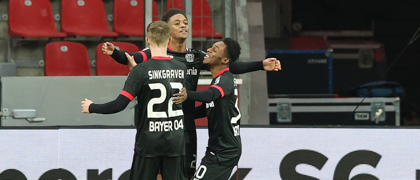 Bij Celtic won Frimpong de Schotse landstitel en de League Cup. In de winter van 2021 klopte er een nieuwe club aan de deur. Voor dertien miljoen euro werd hij door Bayer Leverkusen overgenomen. Peter Bosz was op dat moment de trainer van de Duitsers. “Hij wilde me heel graag naar Leverkusen halen vanwege mijn kwaliteiten. Leverkusen is echt een grote club en ik had niet verwacht dat ze mij wilden hebben. Ik voelde dat ik klaar was voor de volgende stap, dus ik moest deze mogelijkheid wel aanpakken. Bosz gaf me vooral veel vertrouwen. Als de trainer vertrouwen in je heeft, dan speel je met zelfvertrouwen en zonder angst. Dan speel je je beste voetbal. Dat vertrouwen heeft hij mij gegeven en ik zal hem voor altijd dankbaar zijn voor de kansen die ik kreeg.”