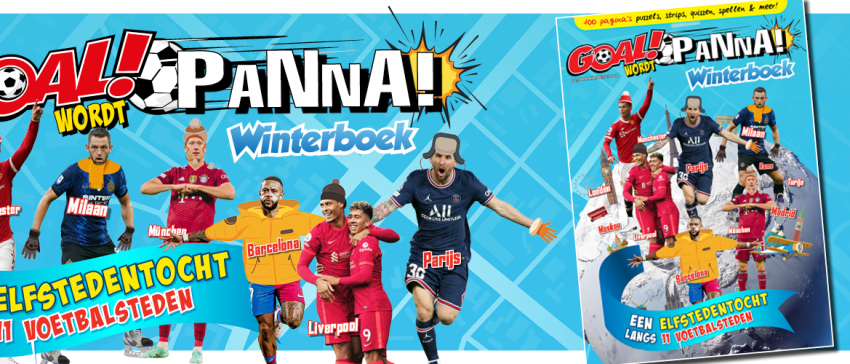 It giet oan! Als je die Friese woorden hoort, staat de Elfstedentocht op het punt van beginnen. Onder meer door de opwarming van de aarde wachten we daar al 25 jaar op! Wij van PANNA! zijn het wachten beu. En vinden voetbal stiekem toch iets leuker dan schaatsen. De oplossing: een elfstedentocht langs elf internationale voetbalsteden! In dit doeboek, het eerste doeboek van GOAL! en PANNA! samen, ga jij op reis. Via deze link is het Winterboek handig en snel online te bestellen. Zorg dat je overal genoeg punten haalt, zodat je aan het einde genoeg stempels hebt voor een mooie medaille. We wensen je veel lees- en puzzelplezier!