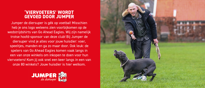 Met andere honden omgaan, vindt hij leuk. “Als we hem naar het pension brengen, maakt hij een herkenbaar geluid. Daarmee geeft hij aan dat hij ernaar uitkijkt. In Nederland gaat hij in Raalte naar de hondenopvang. Natuurlijk brengen we hem het liefst zo min mogelijk, maar soms kan het niet anders. Dan breng ik hem voor de training weg en haal ik hem na afloop weer op. Ik kreeg de tip van Justin Bakker, mijn ploeggenoot bij Go Ahead Eagles. Zijn hond zit op dezelfde opvang. Mats Deijl heeft sinds kort een hondje. Die verblijft daar ook.”