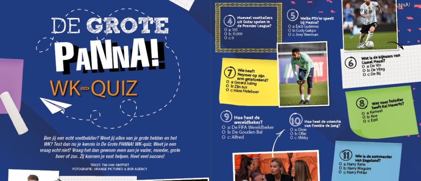 De extra dikke WK Special van PANNA! is officieel uit en bij de abonnees op de deurmat gevallen. Daarnaast ligt hij op de bekende plekken in de supermarkt, de boekenhandel en op veel reislocaties. Denk aan de NS-stations, Schiphol, Eindhoven Airport en Rotterdam Airport. Uiteraard is de editie ook online verkrijgbaar. Via deze link in een handomdraai gebeurd. Een abonnement nemen is helemaal gemakkelijk. Elke editie automatisch in de brievenbus. Via deze link zo afgesloten. Zoek je eigen welkomstgeschenk uit! Veel leesplezier!