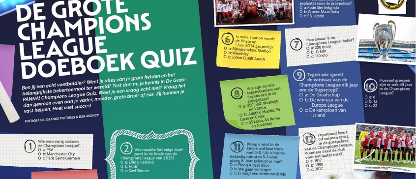 Wist je dat het PANNA! Champions League Doeboek ook online is te bestellen. Via deze link zo gebeurd en binnen twee à drie werkdagen in huis! Dan lees je welke bekende remix-koningen speciaal voor PANNA! de bekende Champions League-hymne van een nieuw jasje hebben voorzien. Kun je eigen trainerscarrière schetsen en kijken of dat later iets voor jou is! Ontwerp je eigen Champions League-trofee en we kijken of je kunt lezen over welke club uit welke stad de commentator het heeft.