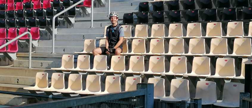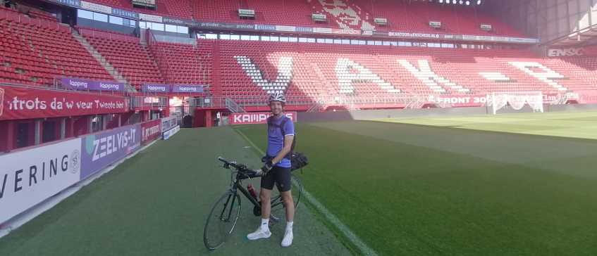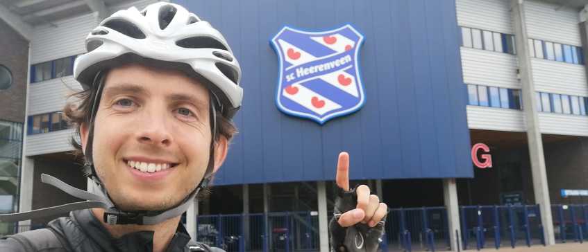 "Qua rit was de weg naar Heerenveen ook minder prettig door de harde wind tegen. Maar toen waren mijn benen nog beter en kon ik genieten van de mooie omgeving. Naast Rotterdam bleek ook Sittard een uitdaging voor een slaapplaats. Ik belde ook daar iedereen, maar het lukte niet. Het was al een latertje en ik had al 118 kilometer afgelegd. Uiteindelijk heb ik een nachtje in het Fletcher Hotel moeten boeken. Sliep ik onder de Fernando Ricksen Tribune."