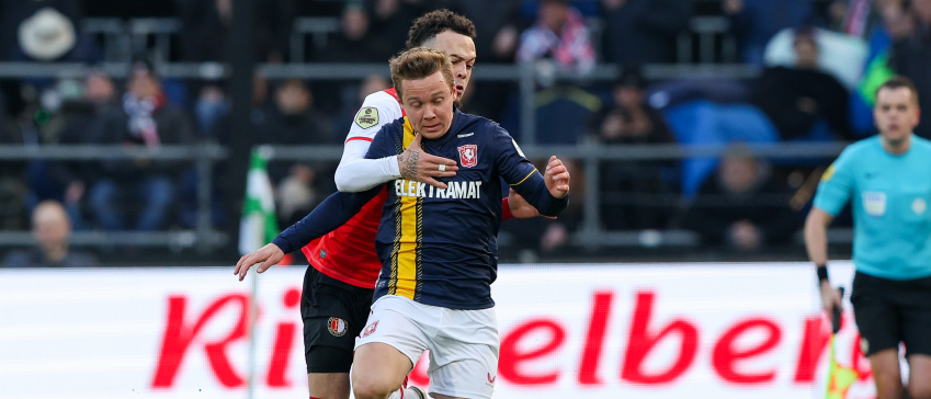 Na een rommelig eerste kwartier met veel balverlies over en weer, was het de uitploeg die de eerste grote kans kreeg van de wedstrijd. Daan Rots was ontsnapt aan de Rotterdamse defensie, maar mikte van dichtbij naast. Via Santiago Giménez deed Feyenoord wat terug. De Mexicaan kopte na een strakke voorzet de bal ruim buiten de palen. De Rotterdammers zetten de druk op het strafschopgebied van FC Twente door, die goed georganiseerd stonden te verdedigen.
