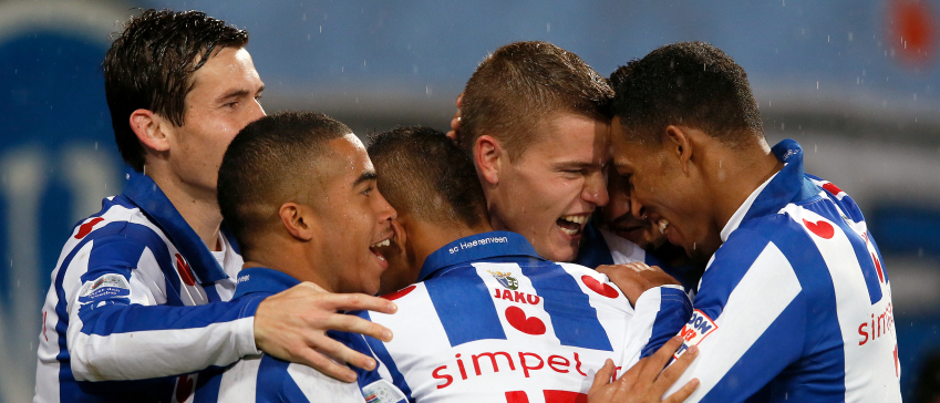 Alfred Finnbogason was vaak het middelpunt van de feestvreugde bij sc Heerenveen.