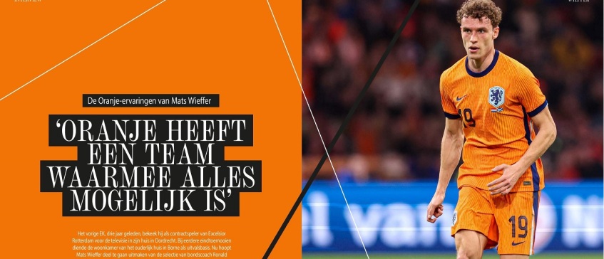 Het vorige EK, drie jaar geleden, bekeek hij als contractspeler van Excelsior Rotterdam voor de televisie in zijn huis in Dordrecht. Bij eerdere eindtoernooien diende de woonkamer van het ouderlijk huis in Borne als uitvalsbasis. Nu hoopt maakt Mats Wieffer deel te gaan uitmaken van de selectie van bondscoach Ronald Koeman die op jacht gaat naar de tweede Europese titel in de historie. "Op het middenveld met Frenkie de Jong? Dat kan zeker."