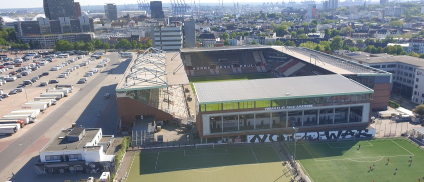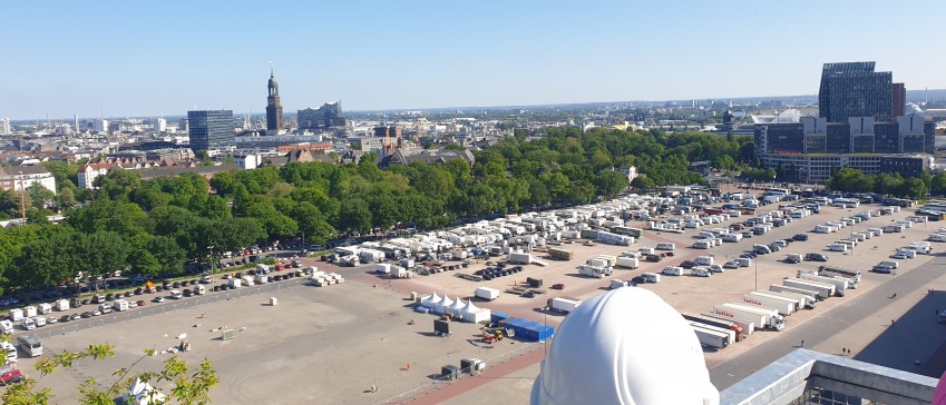 "Hier vooraan komt de Fanzone. Daar aangrenzend het grote terrein voor Public Viewing." We staan op de top van de immens hoge Hamburg Bunker als een van de gidsen naar de betonnen laag naast het Millerntor-Stadion wijst. Normaliter in dienst zijnd als parkeerplaats voor de supporters en medewerkers van FC St. Pauli, de kersverse kampioen van de 2. Bundesliga. Twee keer in het jaar als fundament van een megakermis. Tijdens het aankomende EK zal het Heiligengeistfeld, zoals het terrein officieel heet, dienst doen als verzamelplek voor feestende supporters. Voor families met kinderen die de EK-koorts willen opnemen en voor voetballiefhebbers die een wedstrijd intens willen beleven, maar geen wedstrijdkaartje hebben weten te bemachtigen.
