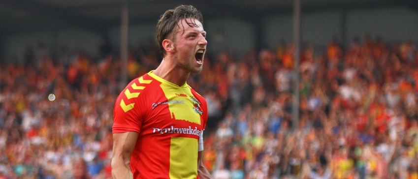 Bart Vriends juicht nadat hij de gelijkmaker tegen Ferencváros heeft binnengeknikt in 2015.