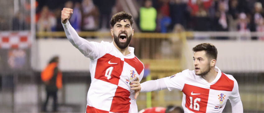 Josko Gvardiol viert zijn treffer tegen Portugal.