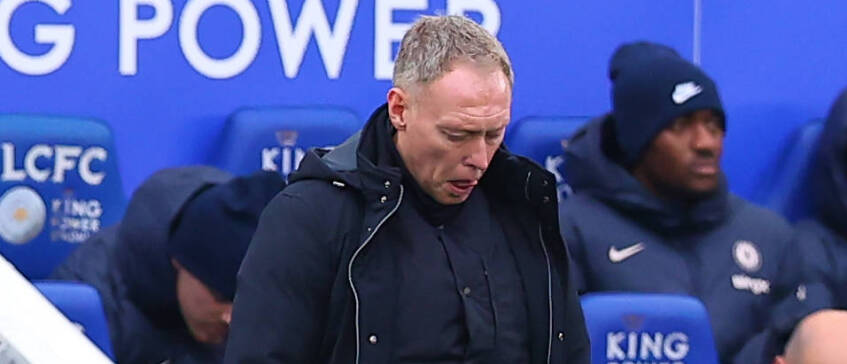 De inmiddels ontslagen Steve Cooper tijdens zijn laatste wedstrijd in dienst van Leicester.