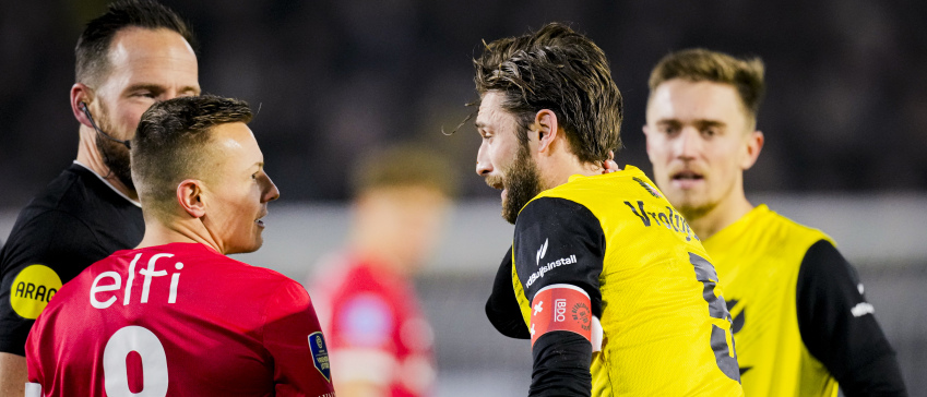 Ook Van den Bergh en Kemper werden op de bon geslingerd, dit maal voor klagen richting de arbitrage. Normaal gesproken zijn het toch de 'echte' overtredingen die de drie op het wedstrijdformulier doen laten verschijnen. De vechtmentaliteit die Carl Hoefkens in zijn elftal heeft laten sluipen, kan daar toch niet los van worden gezien.