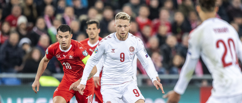 Morten Olsen zag al heel vroeg dat Jørgensen een enorm talent was. Op 11 november 2011 gebeurde iets voor de spits waar iedere voetballer van droomt: zijn debuut voor het nationale elftal. In de 2-0 gewonnen oefenwedstrijd tegen Zweden stond de 20-jarige Jørgensen 19 minuten op het veld. Hij scoorde nog niet, maar 38 wedstrijden later heeft hij er toch negen inliggen voor Denemarken. Jørgensen was actief op het wereldkampioenschap voetbal in 2018, waar de achtste finale het eindstation bleek.