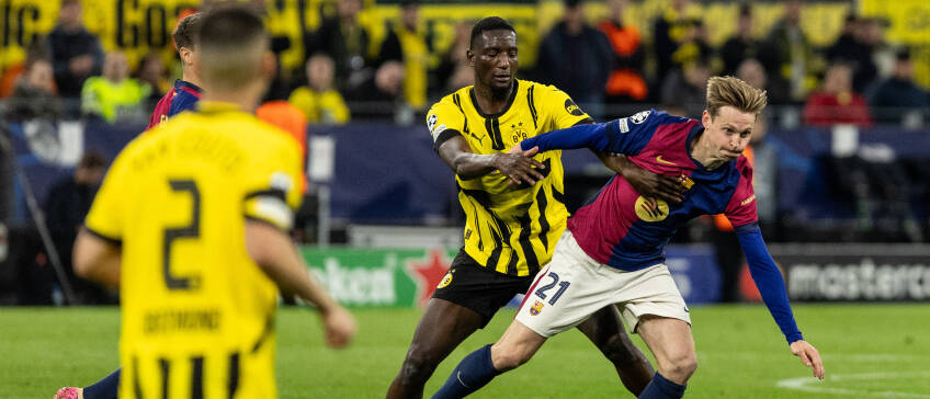 De thuisploeg begon veelbelovend en kwam al vroeg op voorsprong via een benutte strafschop van spits Guirassy. Na rust verdubbelde Guirassy, die de huidige topscorer is van dit seizoen in de Champions League, de score en wakkerde de Duitse storm aan. FC Barcelona had moeite om grip op de wedstrijd te krijgen, maar een ongelukkig eigen doelpunt van Bensebaini gaf de Catalanen genoeg ademruimte. Een kwartier voor tijd completeerde Guirassy zijn hattrick, waardoor hij de meest trefzekere Afrikaanse speler in één Champions League-seizoen werd. Barça treft in de halve finale de winnaar van het tweeluik tussen Internazionale en Bayern München.