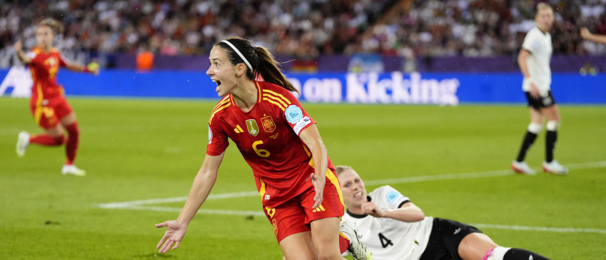 In de halve finale wachtte Duitsland, dat met veel verdediging het Spaanse aanvalsspel probeerde te ontregelen. De wedstrijd ging naar verlenging, waarin Aitana Bonmatí het verschil maakte. De ster van FC Barcelona, die kort voor het toernooi nog kampte met een hersenvliesontsteking, was op tijd fit om haar ploeg naar de finale te schieten. Voor Spanje is het de eerste keer dat het de EK-finale bereikt.