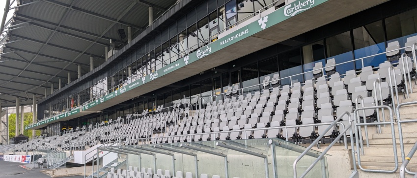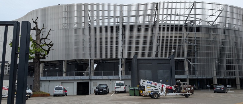 In de hoek van het stadion met ideaal uitzicht op de corners aan de linkerkant vanuit de televisie bekeken. Omdat het stadion een officiële atletiekbaan kent, zit het publiek redelijk ver van het veld af. In de hoek is verdeeld over twee verdiepingen plek voor vijftiendhonderd supporters. Allemaal zitplaatsen. De catering en sanitaire voorzieningen zijn door een promenade bij de uitgang van de vakken goed te bereiken.