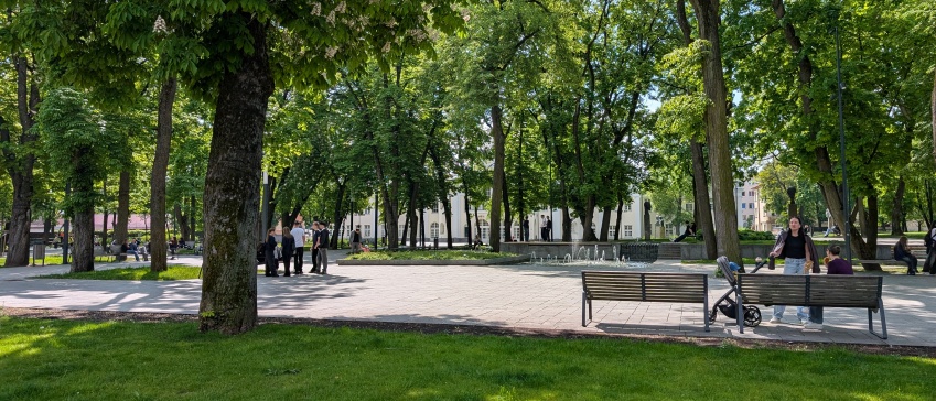 Aan de Laisves Aleja, Vrijheidsboulevard, ligt ook een park met speeltoestellen