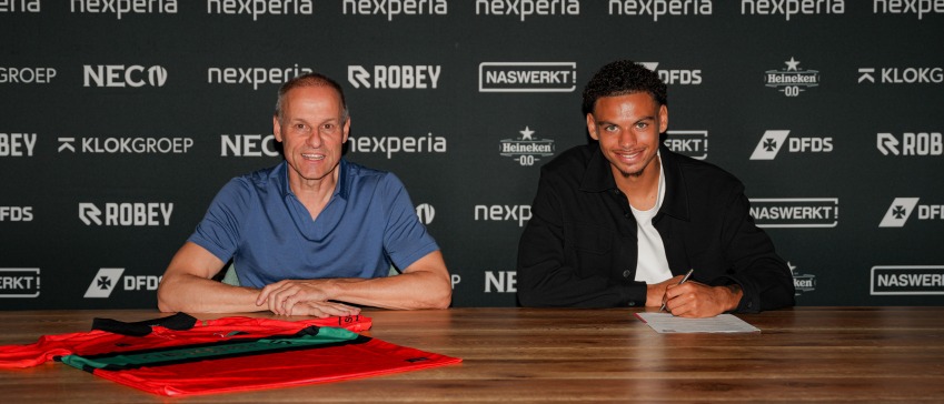 Deveron Fonville komt van FC Dordrecht over en tekende voor vier jaar bij NEC. Foto: NEC Media