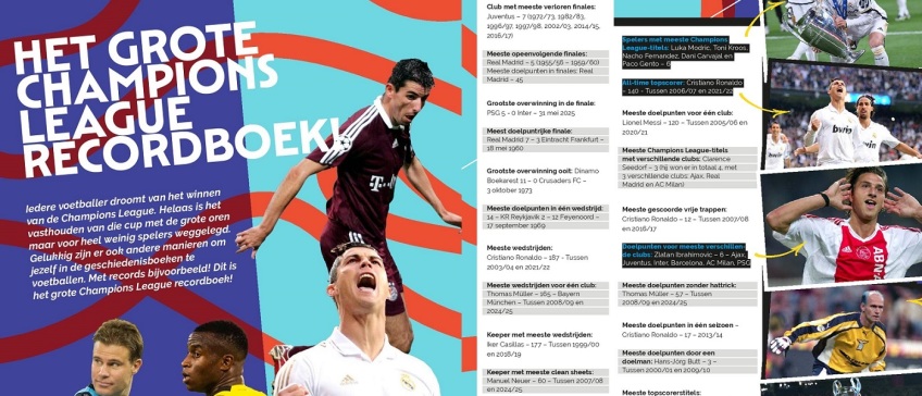 Iedere voetballer droomt van het winnen van de Champions League. Helaas is het vasthouden van die cup met de grote oren maar voor heel weinig spelers weggelegd. Gelukkig zijn er ook andere manieren om jezelf in de geschiedenisboeken te voetballen. Met records bijvoorbeeld! Lees het in het grote Champions League recordboek!