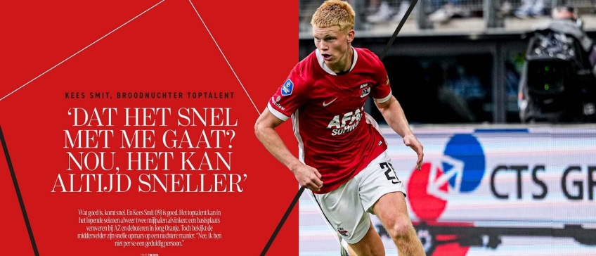Sinds de zomer staat hij in een rijtje met namen als Fernando Torres, Marco Asensio en Mason Mount. Kees Smit werd verkozen tot Beste Speler op het EK Onder 19 en zag zijn naam in de geruchtenmolen plots in verband worden gebracht met Real Madrid. Het gaat snel. Maar niet snel genoeg om de broodnuchtere middenvelder van de wijs te brengen. "Nou, het kan altijd sneller."
