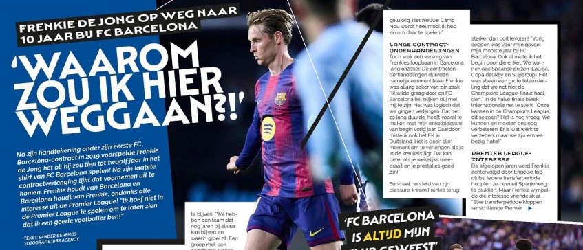 Na zijn handtekening onder zijn eerste FC Barcelona-contract in 2019 voorspelde Frenkie de Jong het al: hij zou tien tot twaalf jaar in het shirt van FC Barcelona spelen! Na zijn laatste contractverlenging lijkt dat voornemen uit te komen. Frenkie houdt van FC Barcelona en Barcelona houdt van Frenkie, ondanks alle interesse uit de Premier League! "Ik hoef niet in de Premier League te spelen om te laten zien dat ik een goede voetballer ben!"