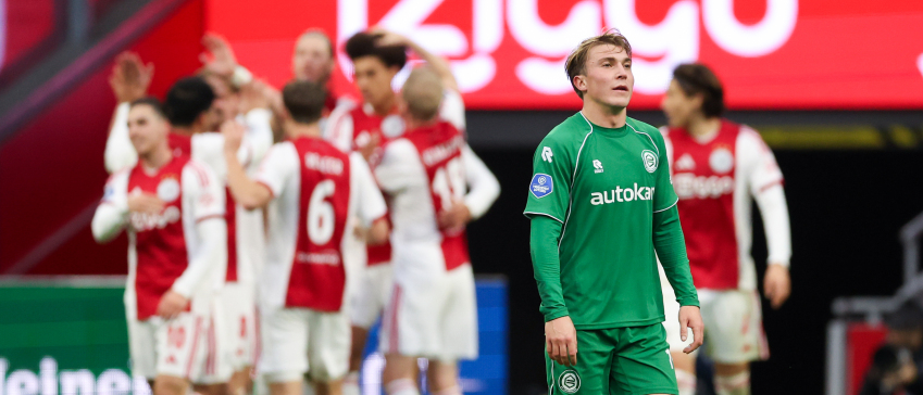 Ook in het restant van de gestaakte wedstrijd tegen Ajax slaagde FC Groningen er niet in de wedstrijd vroeg in handen te nemen. In een lege Johan Cruijff ArenA kregen de noorderlingen meerdere kansen, maar opnieuw ontbrak de afwerking. Grote mogelijkheden voor Brynjólfur Willumsson, Thom van Bergen en Stije Resink werden om zeep geholpen. De statistieken lieten zien dat FC Groningen 1,65 expected goals bij elkaar speelde in de eerste helft. Toch ging de ploeg rusten met een achterstand door een treffer van Mika Godts. Uiteindelijk verloor FC Groningen met 2-0 in het lege stadion.