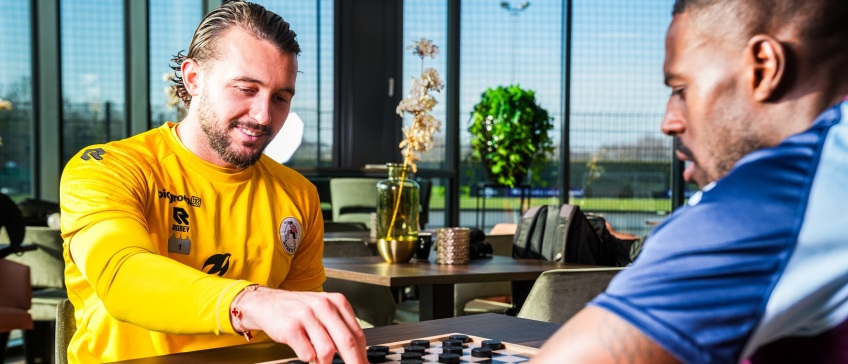 "Dat bord heb ik daar achtergelaten. Ik hoop dat de jongens bij AZ blijven dammen en het daar levend wordt gehouden. Dammen is een mooie denksport die je op veel facetten helpt. Bij Sparta moest ik afwachten of ik andere jongens zo ver kreeg, maar Joël zei onmiddellijk dat hij graag mijn vaste tegenstander wilde worden. Om half tien, kwart voor tien zitten we elke ochtend tegenover elkaar."