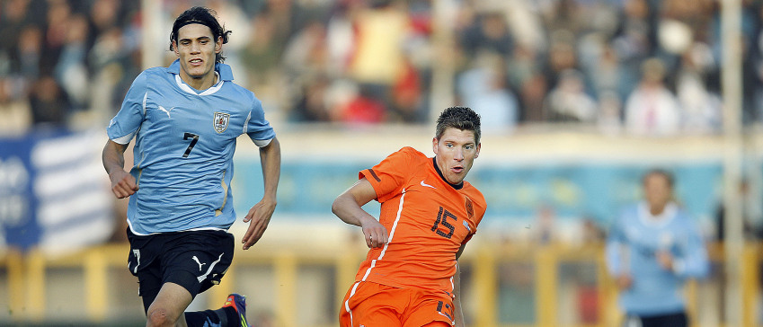 Demy de Zeeuw in de startopstelling tegen Oostenrijk in 2008.