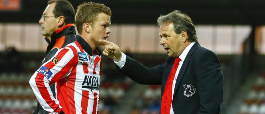 Langedijk krijgt aanwijzingen van trainer Gert Kruys.