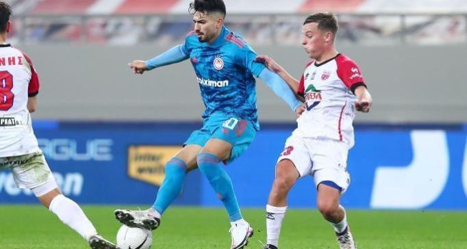 Rienstra (rechts) in actie tegen Olympiakos.