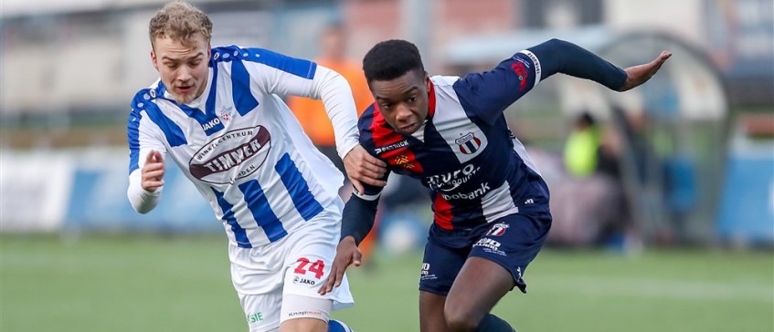 Sekou Sylla (19) kijkt met een tevreden gevoel terug op de afgelopen maanden. Zijn eerste voorbereiding bij het eerste elftal van Excelsior Maasluis ging goed en hij kreeg vaak de kans om te spelen. Nu speelt hij wekelijks. Leuk dat het zo snel ging, maar het was allemaal wennen voor de Schiedammer. “Het eerste elftal is echt een groot verschil met de jeugd. Het baltempo ligt bijvoorbeeld veel hoger in de Tweede Divisie. Ook het fysieke gedeelte is nog een dingetje. Ik kom soms tekort in persoonlijke duels, maar daar werk ik aan. Voor de training ga ik een uurtje fitnessen bij een sportschool in de buurt.”